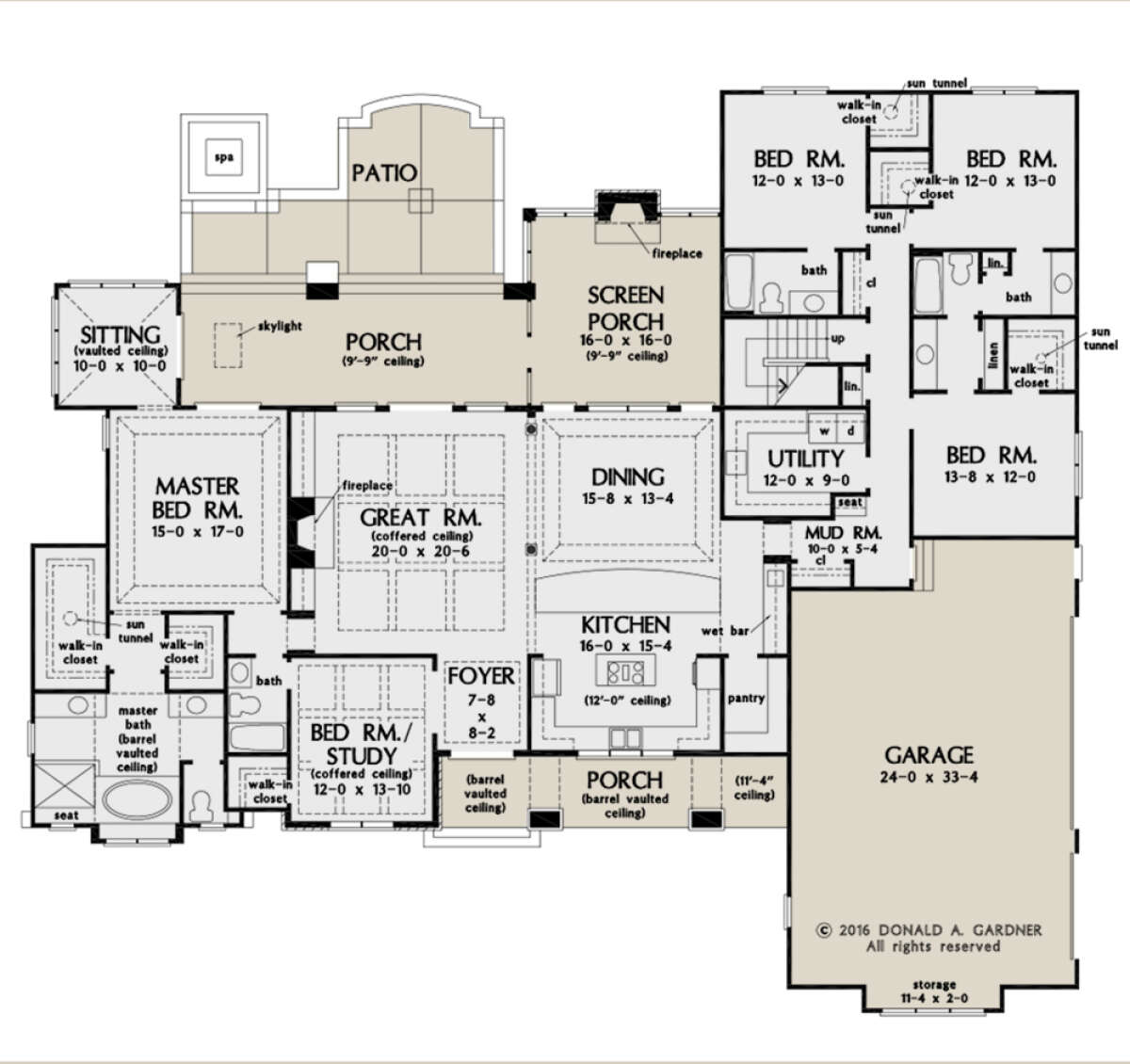 The single-story design enhances accessibility and convenience while maintaining generous room sizes throughout the home. Bedrooms are arranged strategically to create privacy while keeping easy access to the central living areas.