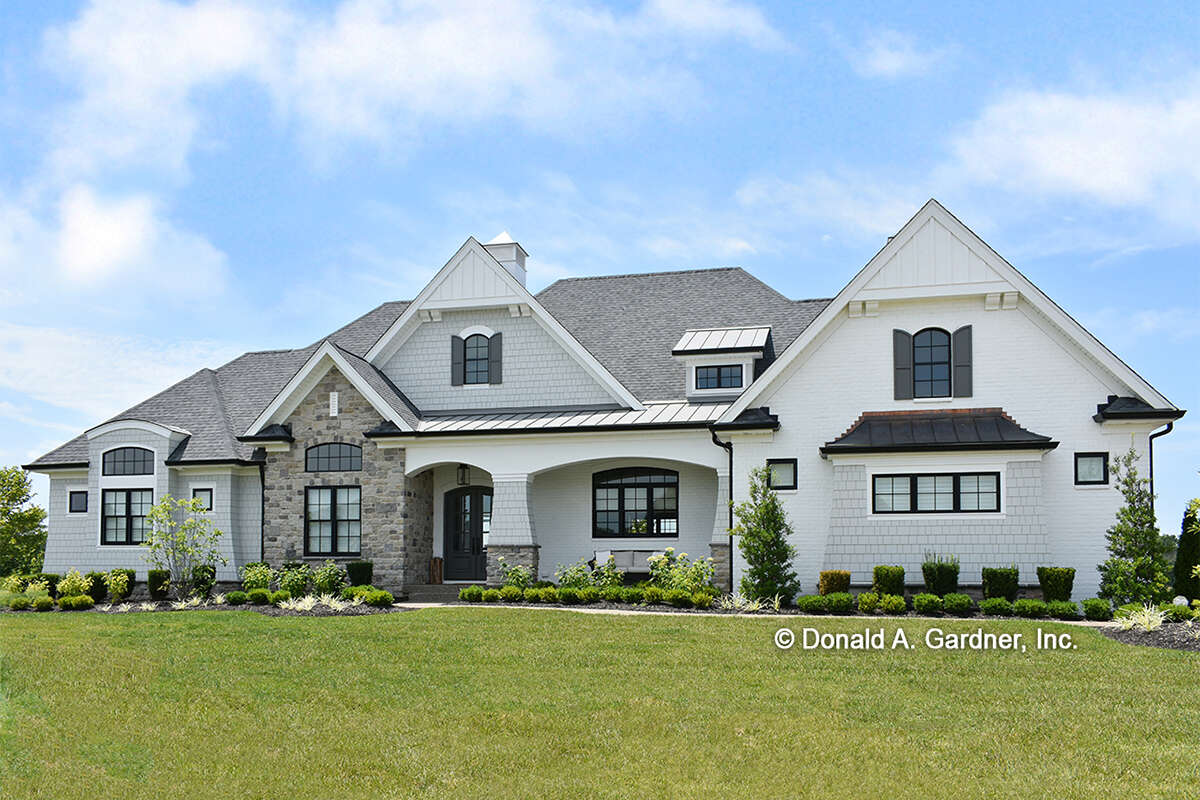 The exterior reflects the signature character of Craftsman architecture, known for its strong rooflines, prominent gables, and carefully balanced proportions. The wide façade gives the home a confident and welcoming street presence while maintaining a warm residential feel. Large windows bring visual rhythm to the elevation while allowing natural light to brighten the interior throughout the day.