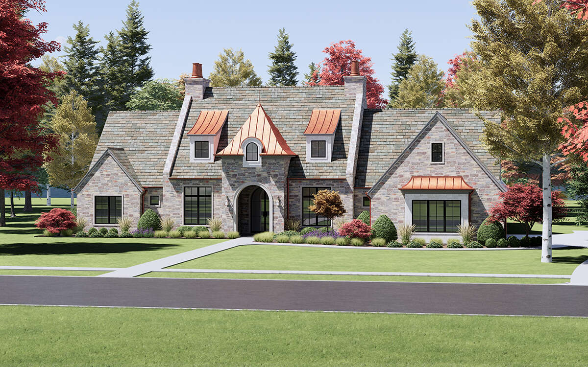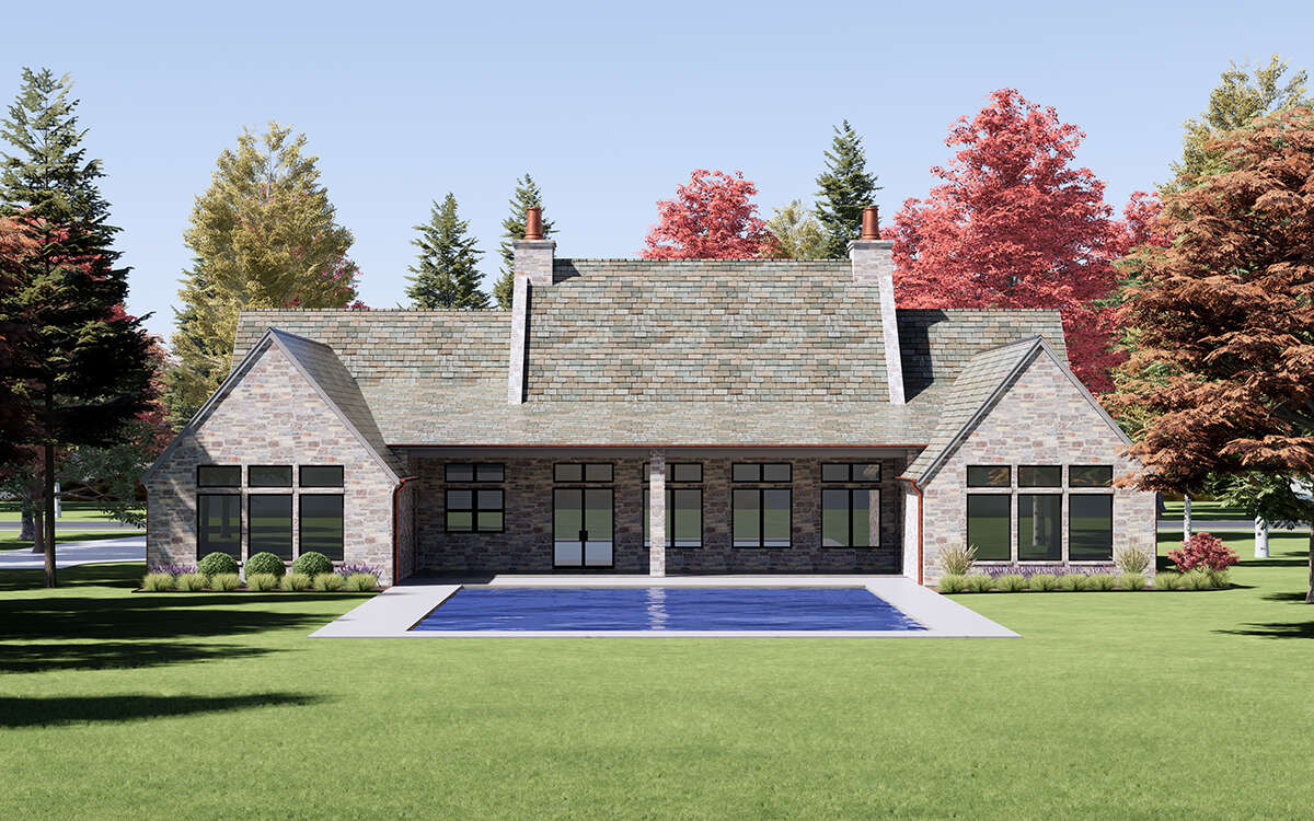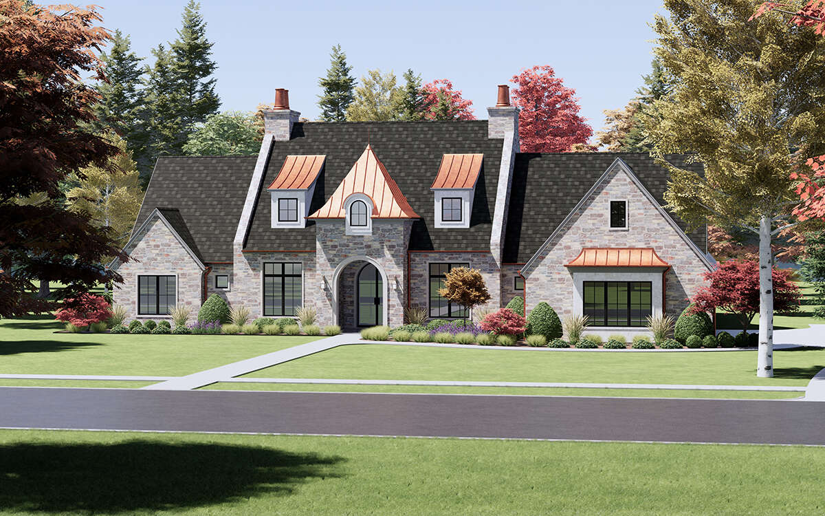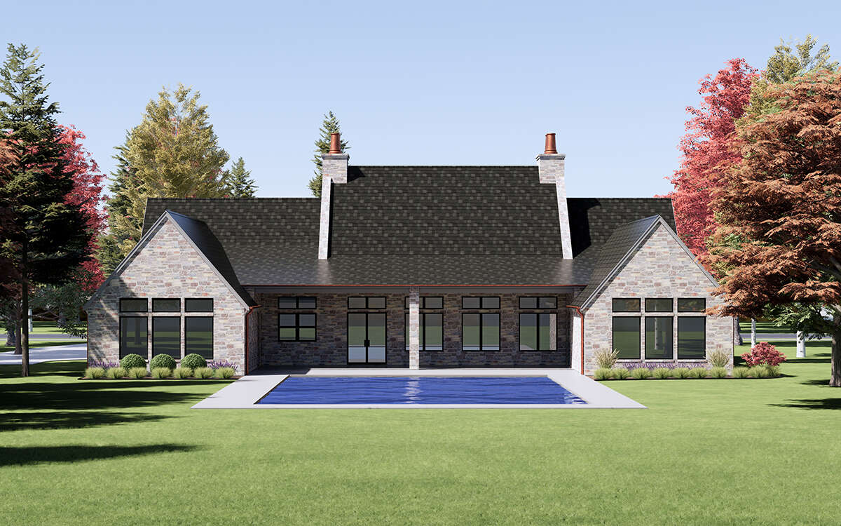 European house plans often blend traditional detailing with modern structural simplicity. Features such as stone or brick accents, decorative trim, and symmetrical window placement add texture and character to the exterior while reinforcing the home’s classic design language.